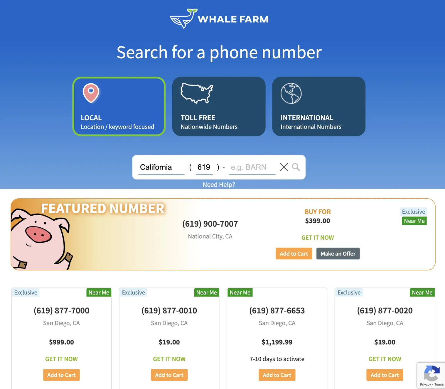 Whale Farm directs their customers to a co-branded website where they can search for, purchase and manage their phone numbers and service. Because they don't handle support and billing, commissions equal easy revenue.
